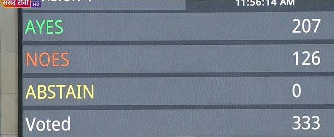 131వ రాజ్యాంగ సవరణ బిల్లును ప్రవేశపెట్టే ప్రక్రియలో సభలో ఓటింగ్ నిర్వహించారు. బిల్లు ప్రవేశపెట్టడానికి మద్దతుగా 207 ఓట్లు రాగా, వ్యతిరేకంగా 126 ఓట్లు వచ్చాయి. మొత్తం 333 మంది ఎంపీలు ఈ ఓటింగ్ ప్రక్రియలో పాల్గొన్నారు. అయితే, ఈ రాజ్యాంగ సవరణ బిల్లు తుది ఆమోదం పొందాలంటే సభలో 2/3 వంతు (రెండింట మూడొంతుల) మెజారిటీ తప్పనిసరి. ప్రస్తుతం లోకసభలో ఎన్డీఏ కూటమి బలం 292 వద్ద ఉంది. ఈ బిల్లు నెగ్గాలంటే కేంద్రానికి ఇంకా 68 మంది సభ్యుల మద్దతు అవసరం కానుంది. ఇది ప్రభుత్వానికి సవాలుగా మారే అవకాశం ఉంది.