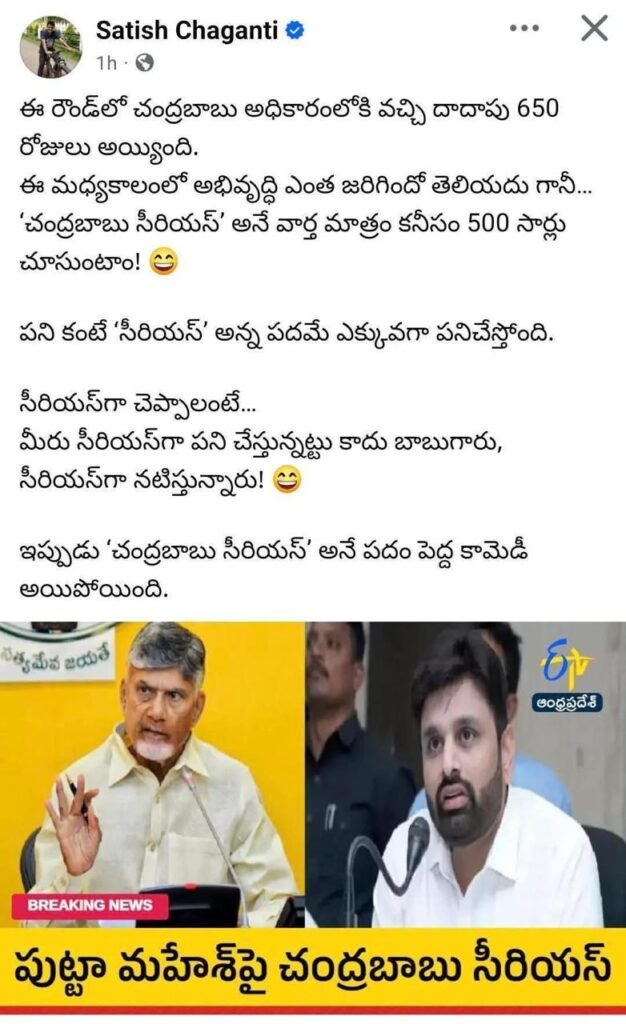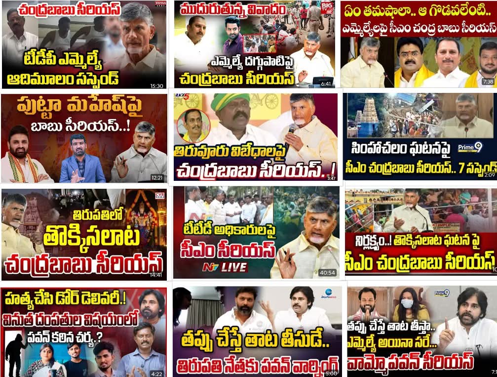 ప్రభుత్వం అధికారంలోకి వచ్చినప్పటి నుంచి ఇప్పటి వరకు దాదాపు 500 సార్లకు పైగా ‘చంద్రబాబు సీరియస్’, ‘పవన్ కళ్యాణ్ (Pawan Kalyan) ఆగ్రహం’ అనే పదాలతో వార్తలు వచ్చాయని స్వయంగా కూటమి సానుభూతిపరులే పోస్టులు పెడుతుండడం గమనార్హం. తప్పు చేసిన నాయకులపై క్రమశిక్షణ చర్యలు తీసుకోవడం కంటే, పత్రికల్లో హెడ్ లైన్స్కే ఆ “సీరియస్” అనే పదం పరిమితం అవుతుందనే విమర్శలు వినిపిస్తున్నాయి. క్షేత్రస్థాయిలో నాయకులు తప్పుల మీద తప్పులు చేస్తున్నా, వారిపై వేటు పడకపోవడంతో కేడర్ నీరుగారిపోతోందన్న అభిప్రాయాలు వెల్లడవుతున్నాయి.