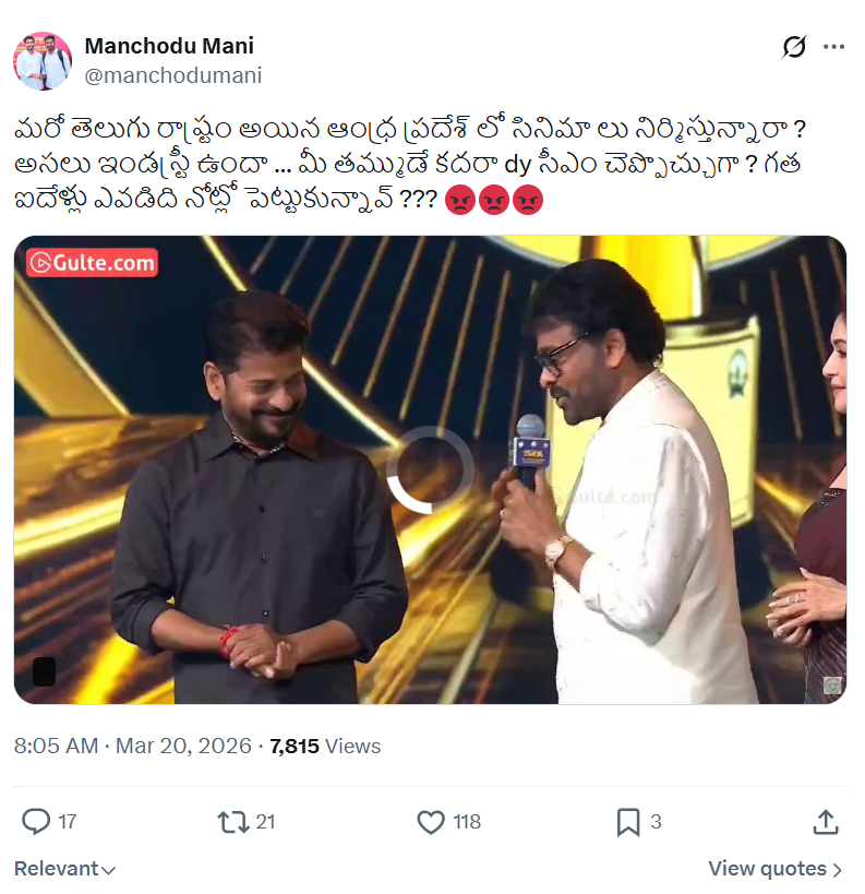మెగాస్టార్ చిరంజీవిని లక్ష్యంగా చేసుకుని సోషల్ మీడియా, రాజకీయ వర్గాల్లో సాగుతున్న దుష్ప్రచారాన్ని జనసేన పార్టీ తీవ్రంగా పరిగణించింది. గుంటూరు జిల్లా జనసేన పార్టీ అధ్యక్షుడు గాదె వెంకటేశ్వరరావు ఈ ప్రచారాల వెనుక ఉన్న శక్తులపై నిప్పులు చెరిగారు. చిరంజీవి లాంటి వ్యక్తిత్వం ఉన్న నాయకుడిపై బురద చల్లడం మానుకోవాలని, లేదంటే తీవ్ర పరిణామాలు ఉంటాయని హెచ్చరించారు.