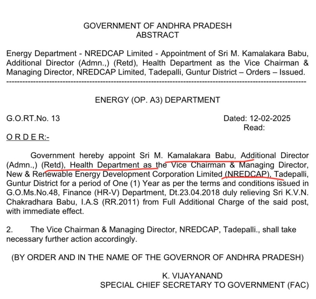 మూడు వారాల్లోనే రూ.లక్షల కోట్ల విలువైన ప్రాజెక్టులను నడిపించే నెడ్ క్యాప్ బాధ్యతలను కమలాకర్ బాబుకు అప్ప‌గించ‌డంపై ప్ర‌భుత్వ వ‌ర్గాల్లో విమ‌ర్శ‌లు వ్య‌క్తం అవుతున్నాయి. పీఎం సూర్యఘర్, కుసుమ్ వంటి కేంద్ర ప్రభుత్వ పథకాలతో పాటు చార్జింగ్ స్టేషన్లు, సౌర, పవన విద్యుత్ ప్రాజెక్టు లతో పాటు పంప్డ్ స్టోరేజ్ ప్రాజెక్టులు సైతం నెడ్ క్యాప్ పరిధిలోనే ఉంటాయి. వీటి పర్యవేక్షణ బాధ్య‌త‌ను హెల్త్ డిపార్టుమెంట్‌కు చెందిన రిటైర్డ్ ఆఫీస‌ర్ కమలాకర్ బాబుకు అప్పగించడం చ‌ర్చనీయాంశంగా మారింది. క‌మ‌లాక‌ర్‌బాబు ప్ర‌భుత్వంలోని ఓ ప్ర‌ధాన అధికారికి స‌న్నిహితుడు కావ‌డం వ‌ల్లే ఈ నియామ‌కం జ‌రిగింద‌ని ఆరోప‌ణ‌లు వెల్లువెత్తుతున్నాయి.