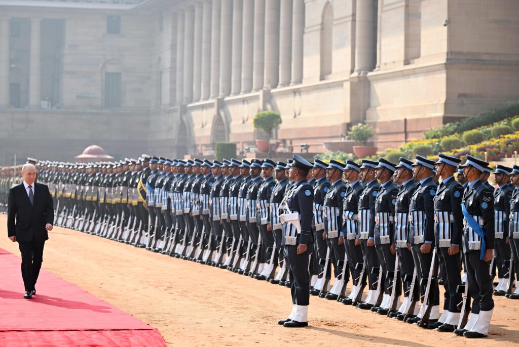 రష్యా అధ్యక్షుడు వ్లాదిమిర్ పుతిన్ భారత పర్యటన కొనసాగుతున్న సందర్భంలో రాష్ట్రపతి భవన్‌లో ఘన స్వాగతం లభించింది. రాష్ట్రపతి ద్రౌపది ముర్ము, ప్రధాని నరేంద్ర మోదీ కలిసి పుతిన్‌ను ఆహ్వానించారు. అనంతరం పుతిన్ త్రివిధ దళాల గౌరవ వందనం స్వీకరించారు.