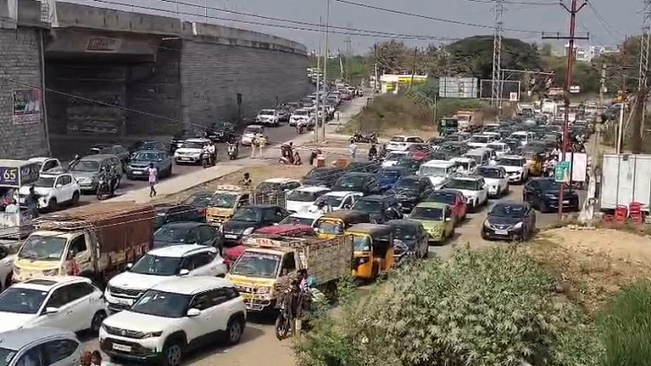 సంక్రాంతి రద్దీ.. నందిగామ వద్ద ట్రాఫిక్ జామ్.. గుంతల రోడ్లతో ప్రయాణికుల అవస్థలు