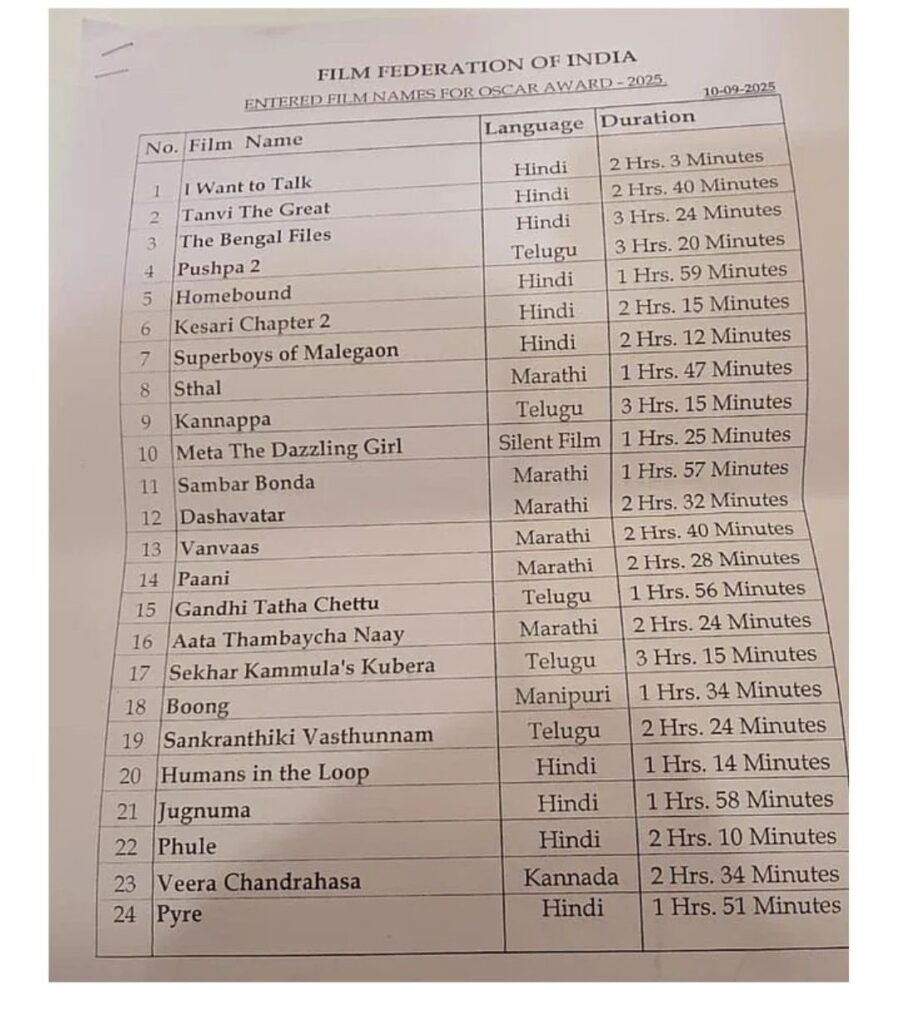 ప్రపంచవ్యాప్తంగా (Worldwide) ప్రతిష్టాత్మకమైన ఆస్కార్ (Oscar) 2025 అవార్డుల కోసం ఐదు తెలుగు చిత్రాలు భారతదేశం తరఫున అధికారికంగా ఎంపికయ్యాయి. ప్రపంచవ్యాప్తంగా సినీ అభిమానుల దృష్టిని ఆకర్షించిన ఈ చిత్రాలు – ‘సంక్రాంతికి వస్తున్నాం’ (Sankranthiki Vasthunnam), ‘కన్నప్ప’ (Kannappa), ‘పుష్ప 2′, (Pushpa) 2’గాంధీ తాత చెట్టు’ (Gandhi Tata Chettu) , మరియు ‘కుబేర’ (Kubera). ఈ చిత్రాలు ఇప్పటికే బాక్సాఫీస్ వద్ద మంచి విజయాన్ని సాధించాయి.