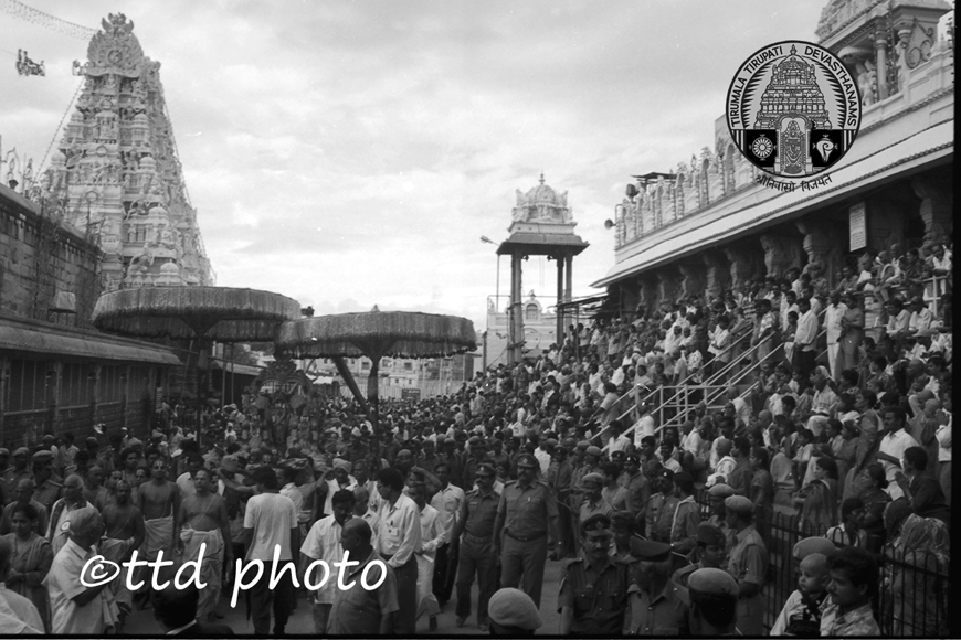 బ్రహ్మోత్సవాల నిర్వాహణ లోపం, ముందస్తు ప్రణాళికలు ఏమీ లేకుండా చేయడంతో 1974 శ్రీవారి బ్రహ్మోత్సవాల రథోత్సవ సమయంలో తొక్కిసలాట జరిగింది. జరిగిన తొక్కిసలాట నెపాన్ని మెల్లగా వెయ్యి కాళ్ల మండపంపై నెట్టేశారని ఇప్పటికీ అంటుంటారు. అయినా, మండప తొలగింపు సాధ్యపడలేదు. 2002 చంద్రబాబు అధికారంలో ఉండగా, బ్రహ్మోత్సవాల్లో మాడవీధుల్లో మరోసారి తోపులాట జరిగింది. 50 మందికి పైగా గాయపడ్డారు. ఈసారి కూడా భక్తుల సంఖ్యను ముందస్తు అంచనా వేయకుండా జరిగిన నిర్వాహణ లోపాన్ని పరిష్కరించకుండా వెయ్యి కాళ్ల మండపంపైకి తోసేశారు. దీంతో మరోసారి వెయ్యికాళ్ల మండపం తొలగింపు తెరపైకి వచ్చింది.