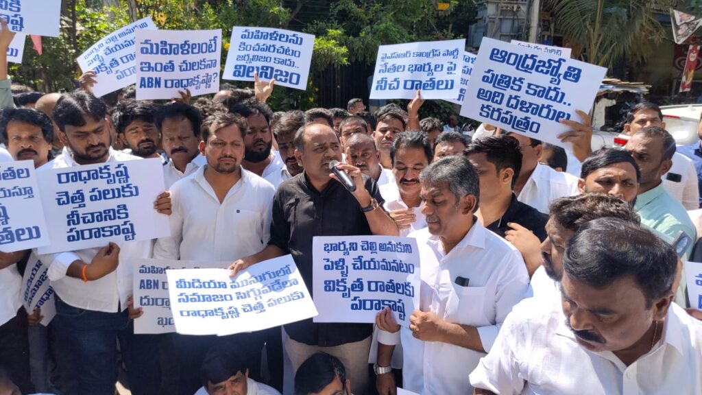 ఆందోళన సందర్భంగా వైసీపీ నేతలు రాధాకృష్ణపై తీవ్రస్థాయిలో విరుచుకుపడ్డారు. రాధాకృష్ణ తన రాతల ద్వారా మహిళలను కించపరిచారని, ఆయన తక్షణమే మహిళా లోకానికి క్షమాపణ చెప్పాలని డిమాండ్ చేశారు. “రాధాకృష్ణ చేసేది జర్నలిజం కాదు, అది పక్కా బ్రోకరిజం. ఆయన ఒక చీటర్, బ్రోకర్” అని నేతలు ధ్వజమెత్తారు. ఏబీఎన్, ఆంధ్రజ్యోతి పత్రికలు కేవలం చంద్రబాబు అజెండాను అమలు చేసే సాధనాలుగా మారాయని, బాబు నోటి నుంచి వచ్చే మాటలనే వీరు రాతలుగా రాస్తున్నారని ఆరోపించారు. రాధాకృష్ణ రాతలు “గజ్జి పట్టిన కులగజ్జి పిచ్చికుక్క రాతలు” అని, జర్నలిజం ముసుగులో ఆయన సైకోయిజం, రౌడీయిజం చేస్తున్నారని మండిపడ్డారు.