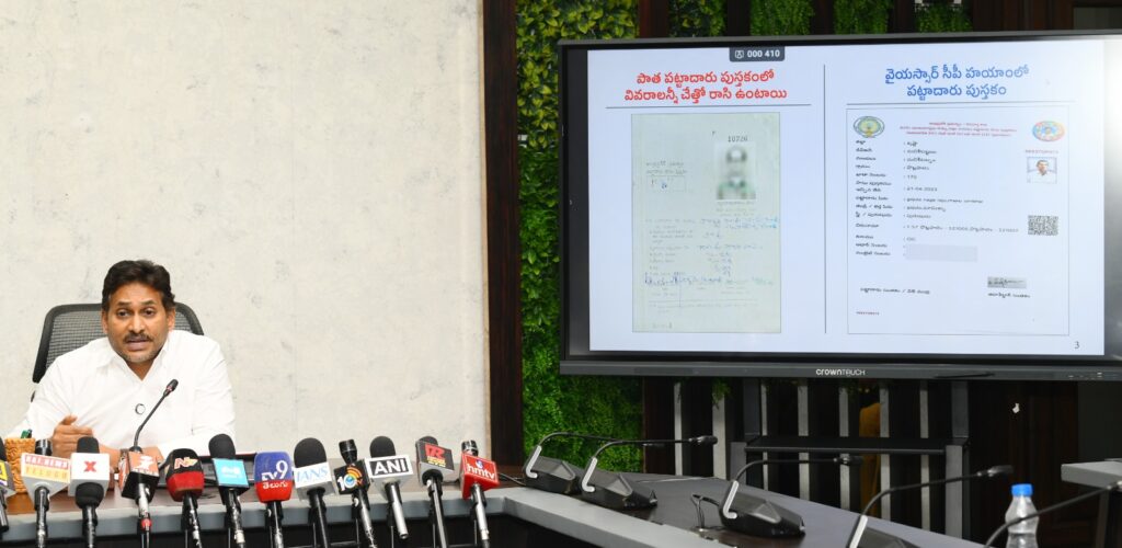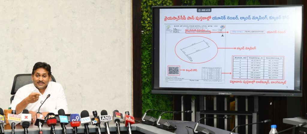 పట్టాదార్ పాస్బుక్స్లో క్యూఆర్ కోడ్ను పొందుపరచడం, భూముల క్రయవిక్రయాలు జరిగిన వెంటనే ఆటోమేటిక్ మ్యూటేషన్, సబ్డివిజన్ జరిగేలా వ్యవస్థను రూపొందించడం, గ్రామ సచివాలయాల నుంచే రిజిస్ట్రేషన్లు జరగేలా చర్యలు తీసుకోవడం వంటి విప్లవాత్మక సంస్కరణలు వైసీపీ హయాంలోనే అమలయ్యాయని జగన్ వివరించారు. అన్ని లావాదేవీలపై రియల్టైమ్ అలర్ట్స్ వచ్చేలా వ్యవస్థ ఏర్పాటు చేసినట్లు తెలిపారు.
